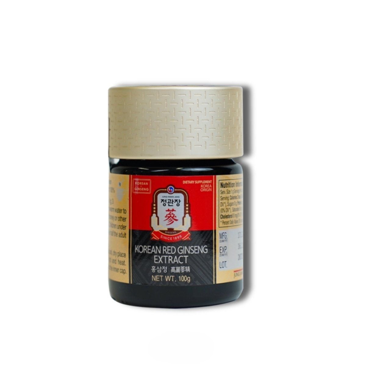 - Hộp giấy bên trong có chứa lọ thủy tinh có chứa 100g cao hồng sâm Jung Kwan Jang KGC.