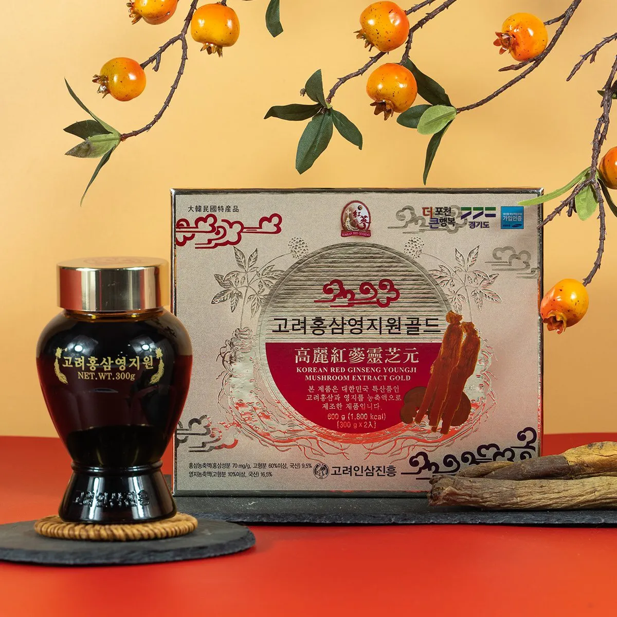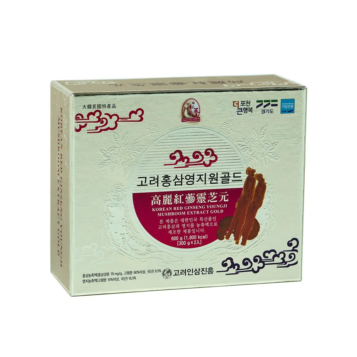 Cao Hồng Sâm Linh Chi Hàn Quốc Gold 300g x 2 Lọ với trọng lượng 300 1 lọ được chiết xuất từ Hồng Sâm Hàn Quốc 6 năm tuổi với linh chi Hàn Quốc giúp bồi bổ nâng cao sức đề kháng cho cơ thể, nâng cao sinh lực, tăng khả năng lưu thông máu, giảm căng thẳng, mệt mỏi, stress, làm quà biếu cho mọi người.