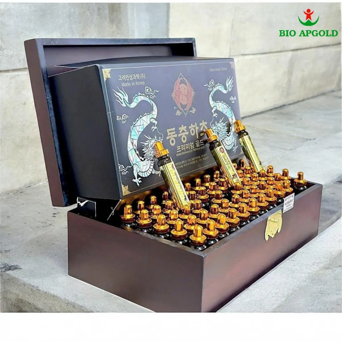 Nước đông trùng hạ thảo Bio Apgold 20ml x 60 ống là sản phẩm cao cấp nhập khẩu từ Hàn Quốc, được chiết xuất từ đông trùng hạ thảo quý hiếm kết hợp thảo dược tự nhiên. Dạng ống nhỏ tiện lợi giúp cơ thể hấp thu nhanh, hỗ trợ bồi bổ sức khỏe và nâng cao thể trạng mỗi ngày.