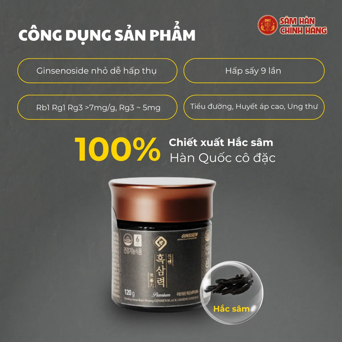 Cao hắc sâm cô đặc 100% (Ginsenosides Rg1, Rb1, Rg3: 7mg/g).