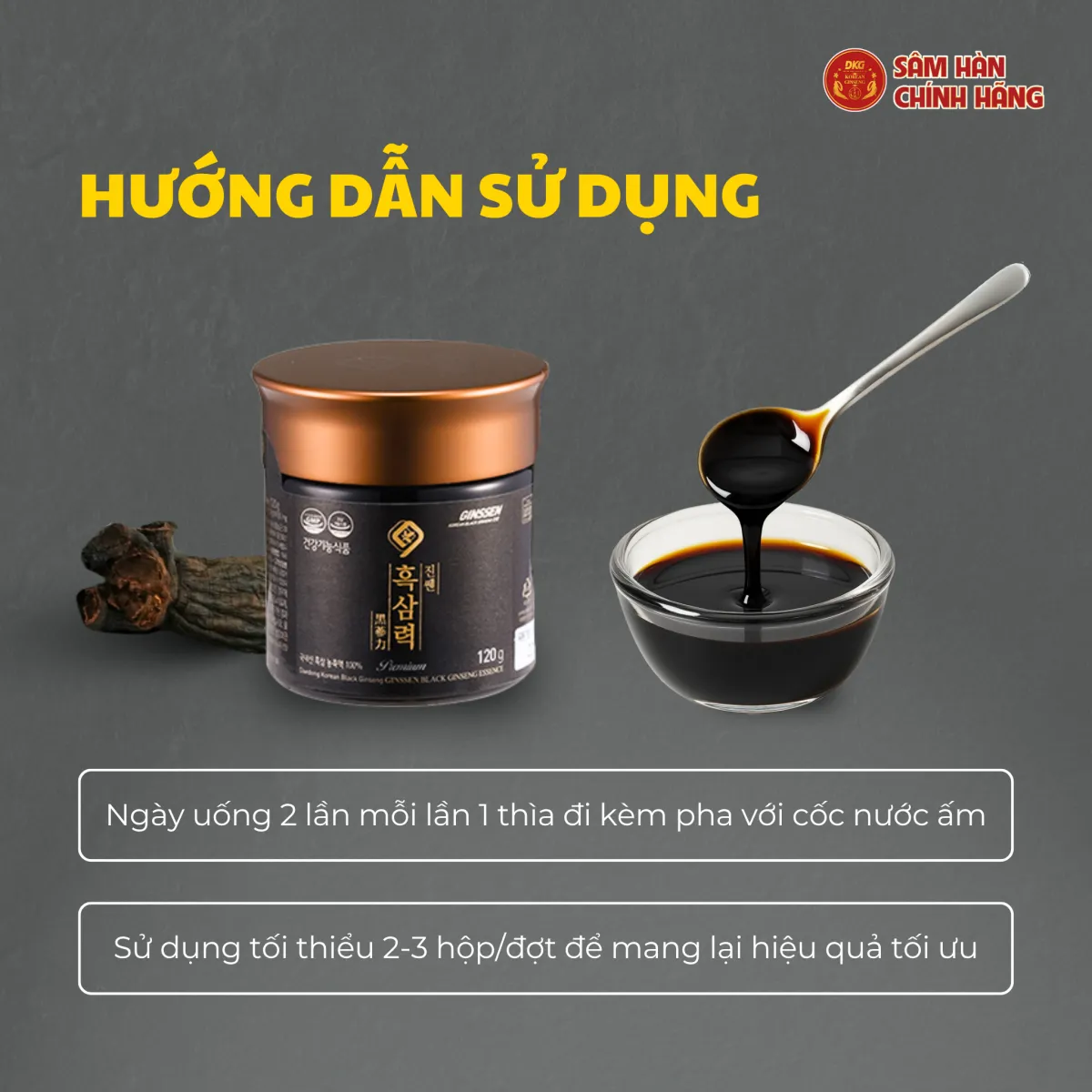 Ginssen Black Ginseng Essence là tinh chất hắc sâm cô đặc 100% được chiết xuất từ rễ sâm 6 năm tuổi Hàn Quốc, trải qua quy trình hấp sấy truyền thống giúp chuyển hóa hồng sâm thành hắc sâm quý hiếm.