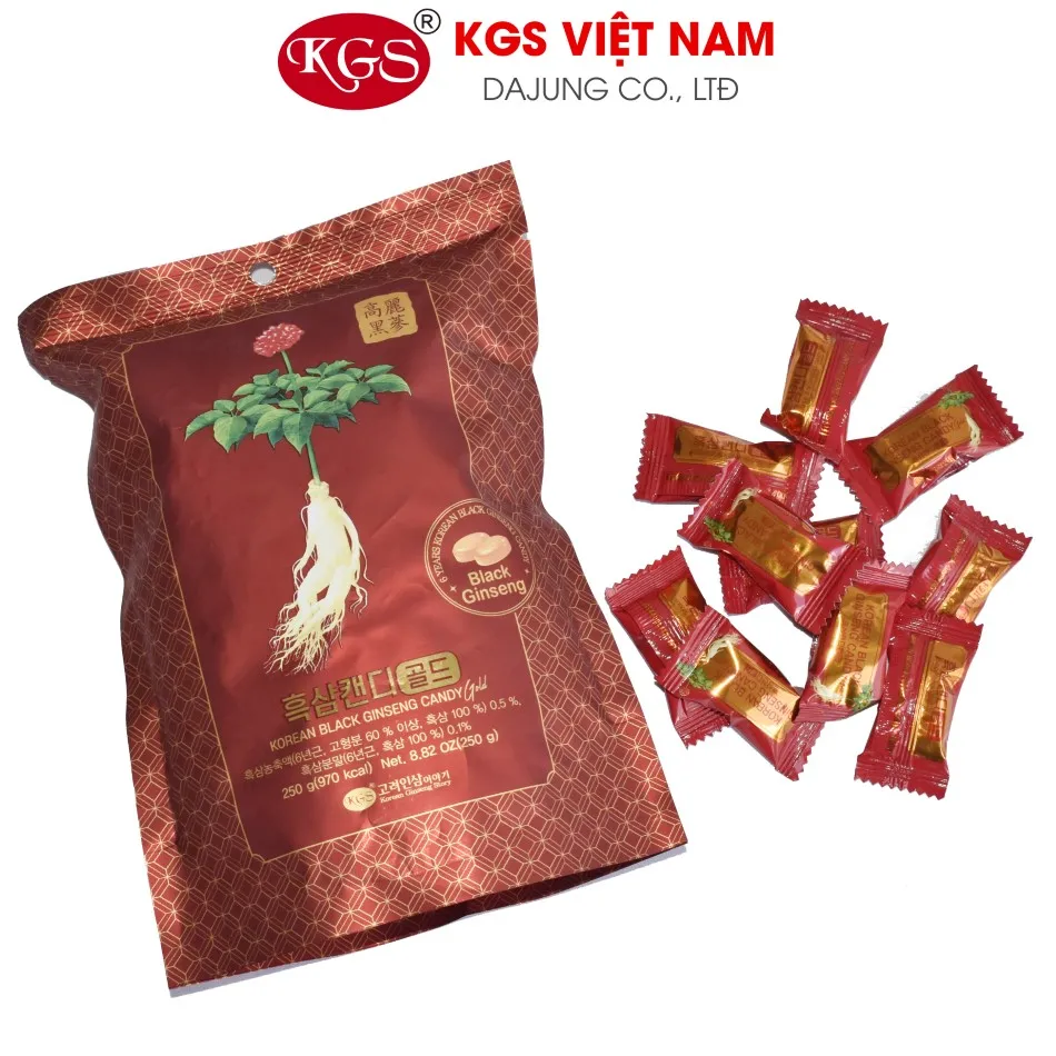 Kẹo Hắc Sâm KGS 250g dạng bịch tiện lợi dễ dàng mang theo khi đi làm, đi du lịch, đi chơi với công dụng giúp giảm căng thẳng stress, cho đầu óc thoải mái, tỉnh táo hơn trong khi lái xe, làm việc...