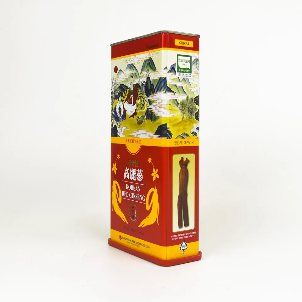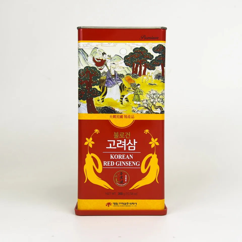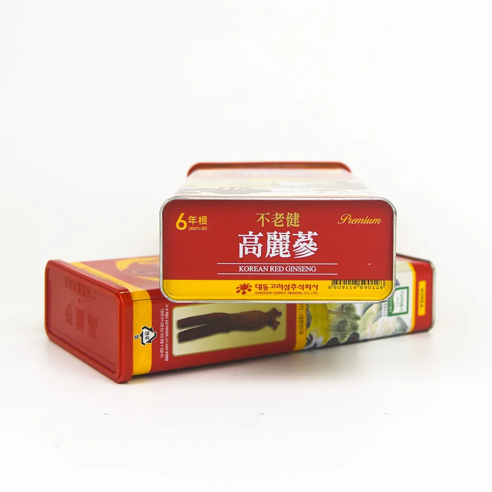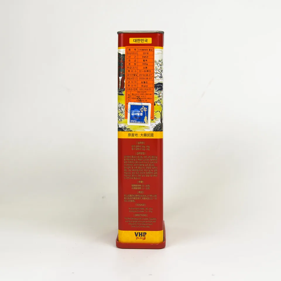 Hộp thiếc 300g bên trong có 10 củ hồng sâm khô