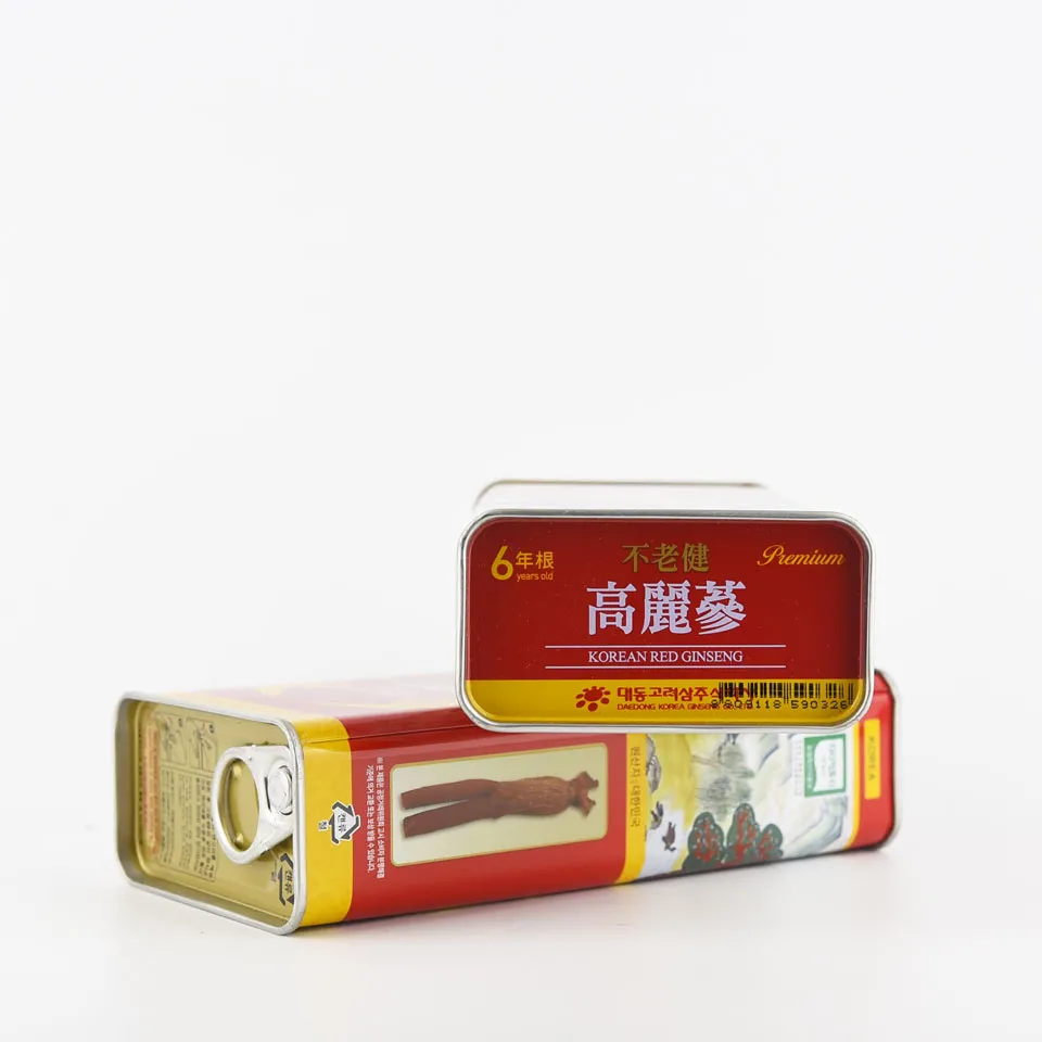 Hộp thiếc 37,5g bên trong có 2-3 củ hồng sâm khô