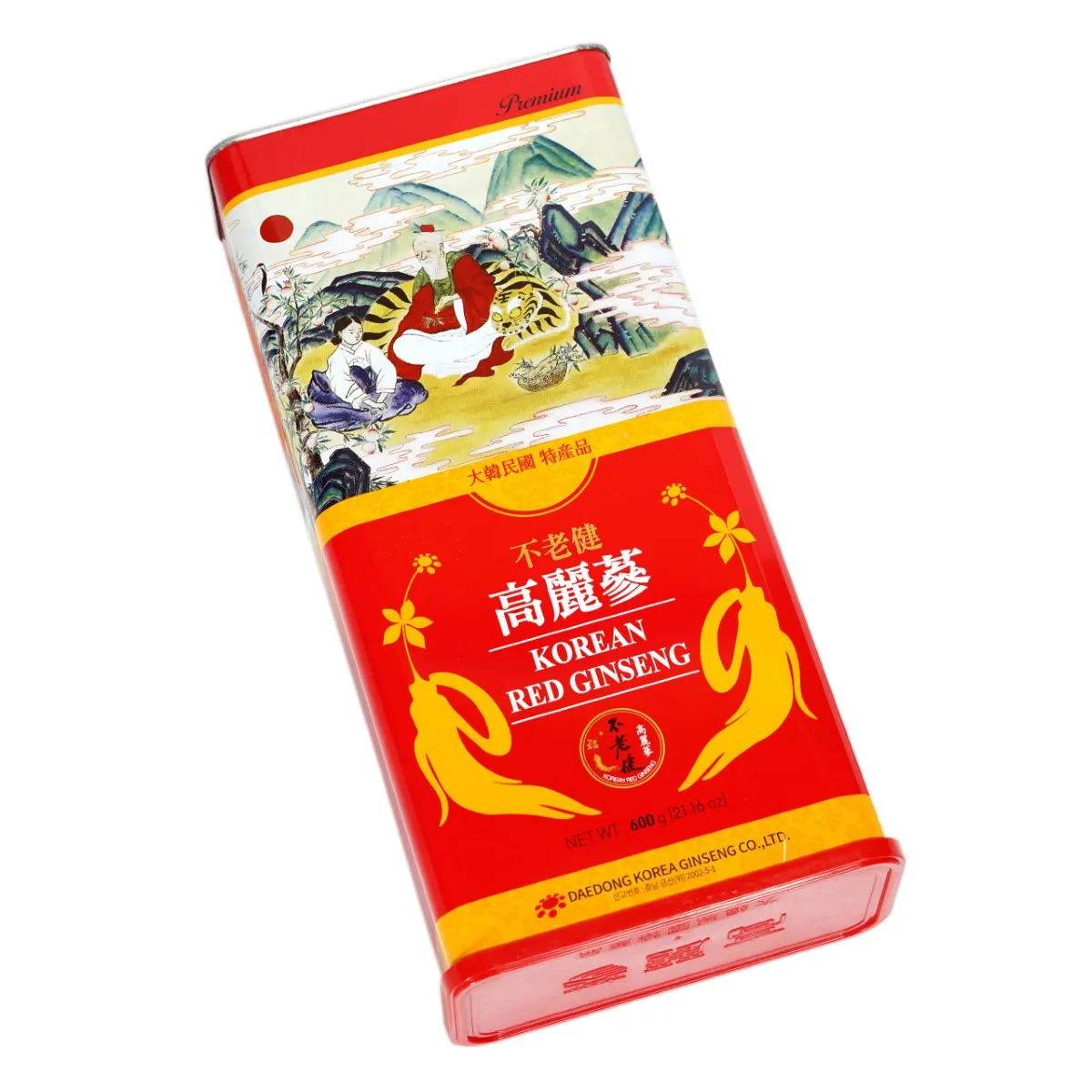 Hồng Sâm Củ Khô Daedong Nguyên Củ Premium 600g (21-40 Củ) là loại có trong lượng lớn nhất được sản xuất bởi Daedong Korea Ginseng Hàn Quốc với 100% là hồng sâm củ khô nguyên củ trải qua nhiều lần hấp sấy giúp tăng hàm lượng Saponin, với hộp thiếc 600g củ khô sử dụng được trong một khoảng thời gian vừa đủ để thấy những công dụng tuyệt vời đến cho sức khỏe người sử dụng như: tăng cường sức khỏe, sức đề kháng, chống lão hóa, giảm căng thẳng, mệt mỏi, giúp tăng cường và lưu thông khí huyết, làm đẹp da, giảm các tác nhân cho phụ nữ ở thời kỳ mãn kinh....