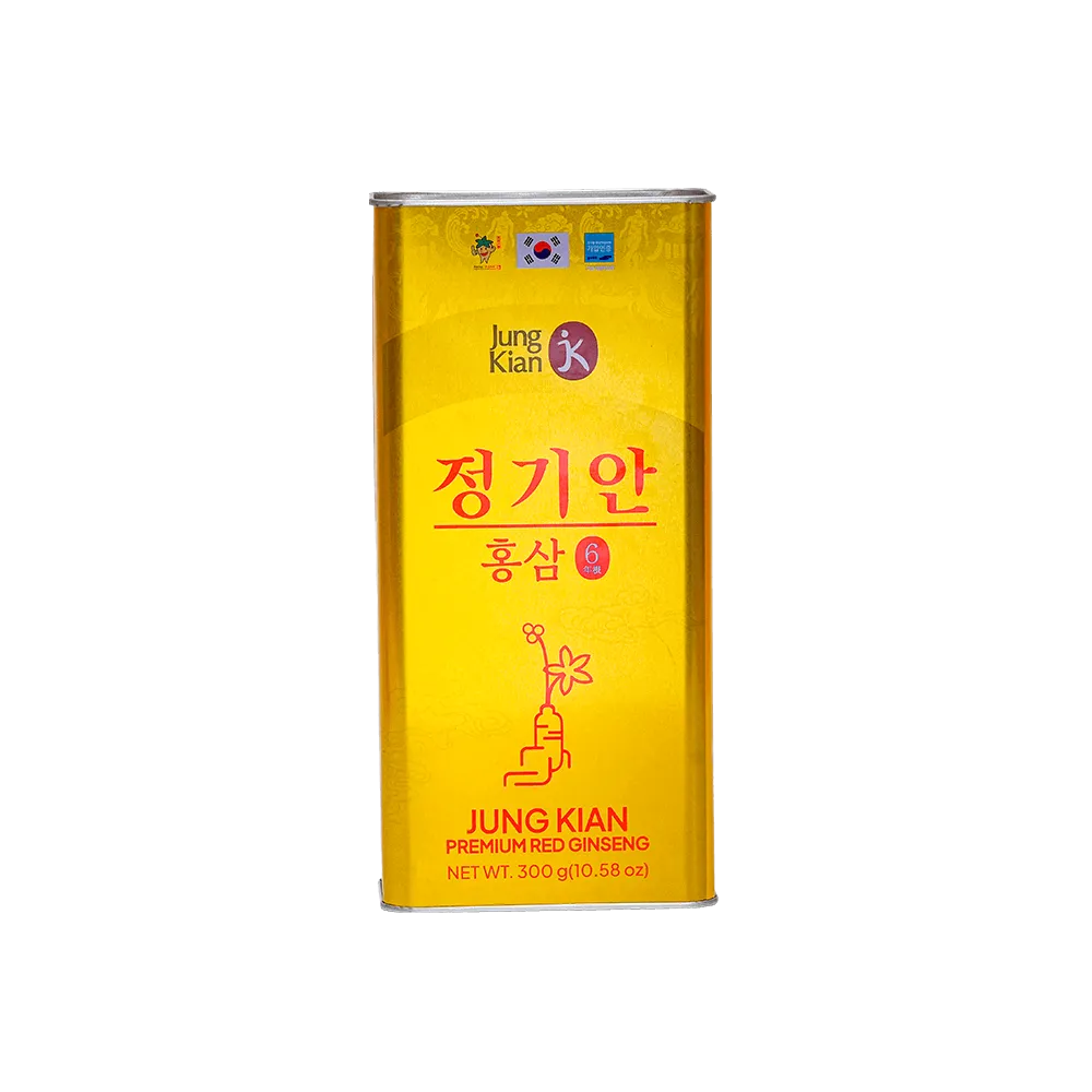 Hồng sâm củ khô Jung Kian 300g được chế biến từ những củ nhân sâm Hàn Quốc 6 năm tuổi đạt tiêu chuẩn cao nhất. Mỗi củ sâm được hấp cách thủy nhiều giờ liền, giúp hoạt chất saponin được kích hoạt tối đa. Sau đó, sâm được sấy khô tự nhiên trong điều kiện nghiêm ngặt, giữ nguyên trọn vẹn hương vị và giá trị dinh dưỡng quý giá.