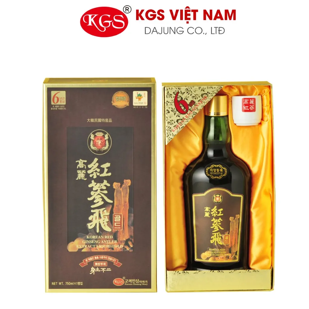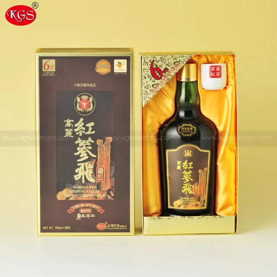 Thành phần: Cao cô đặc Hồng Sâm (6 năm tuổi, thể cứng 60%, thành phần Hồng Sâm hơn 70mg/g) 3%, nước ép quả Lê, đường Oligo Saccharide, glyopexis 70, mật ong , Cao cô đặc Linh Chi, nước chiết xuất Nhung Hươu, nước đường, sữa ong chúa, xiro ngô fructose, chất bảo quản: acid citric (330).
