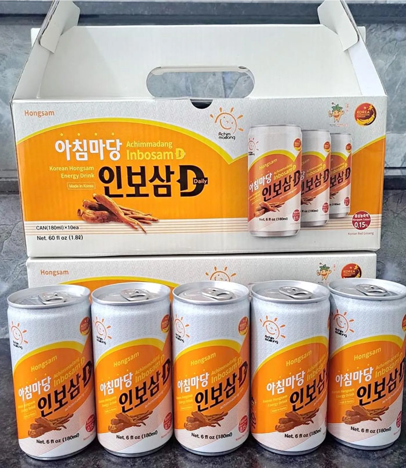 Nước Hồng Sâm Lon Achimmadang Inbosam D 180ml x 10 Lon được chiết xuất hoàn toàn từ hồng sâm 6 năm tuổi, là sản phẩm được nhập khẩu chính hãng từ Hàn Quốc và sản xuất bởi thương hiệu hồng sâm Achimmadang với hộp giấy có chứa 10 lon gọn nhẹ, tiện làm quà tặng quà biếu sức khỏe cho người thân, bạn bè....