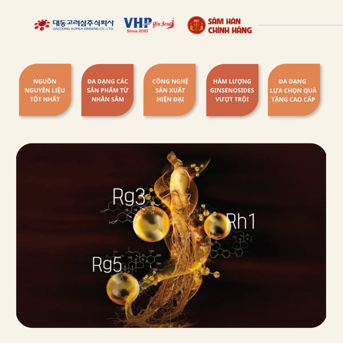 VHP Ginseng là nhà phân phối độc quyền DKG tại Việt Nam, được Chính phủ Hàn Quốc bảo trợ.