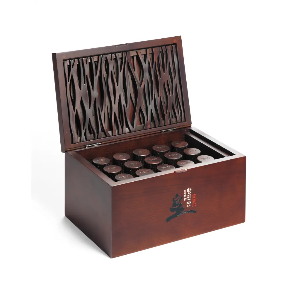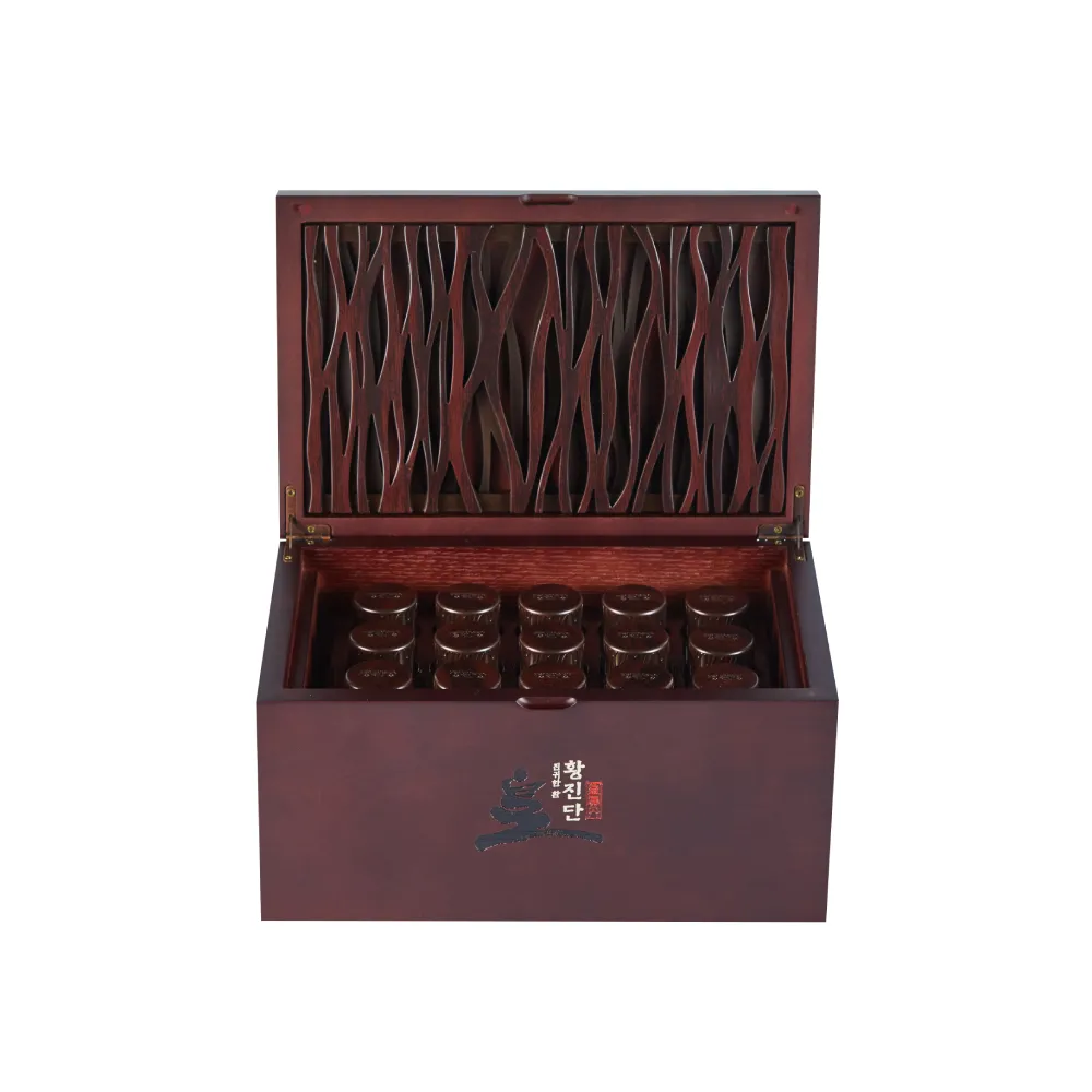 | Quy cách | Hộp gỗ bên trong có 30 hộp nhỏ, mỗi hộp có chứa 1 viên. Có túi giấy sang trọng đi kèm và có khăn để gói quà.. |